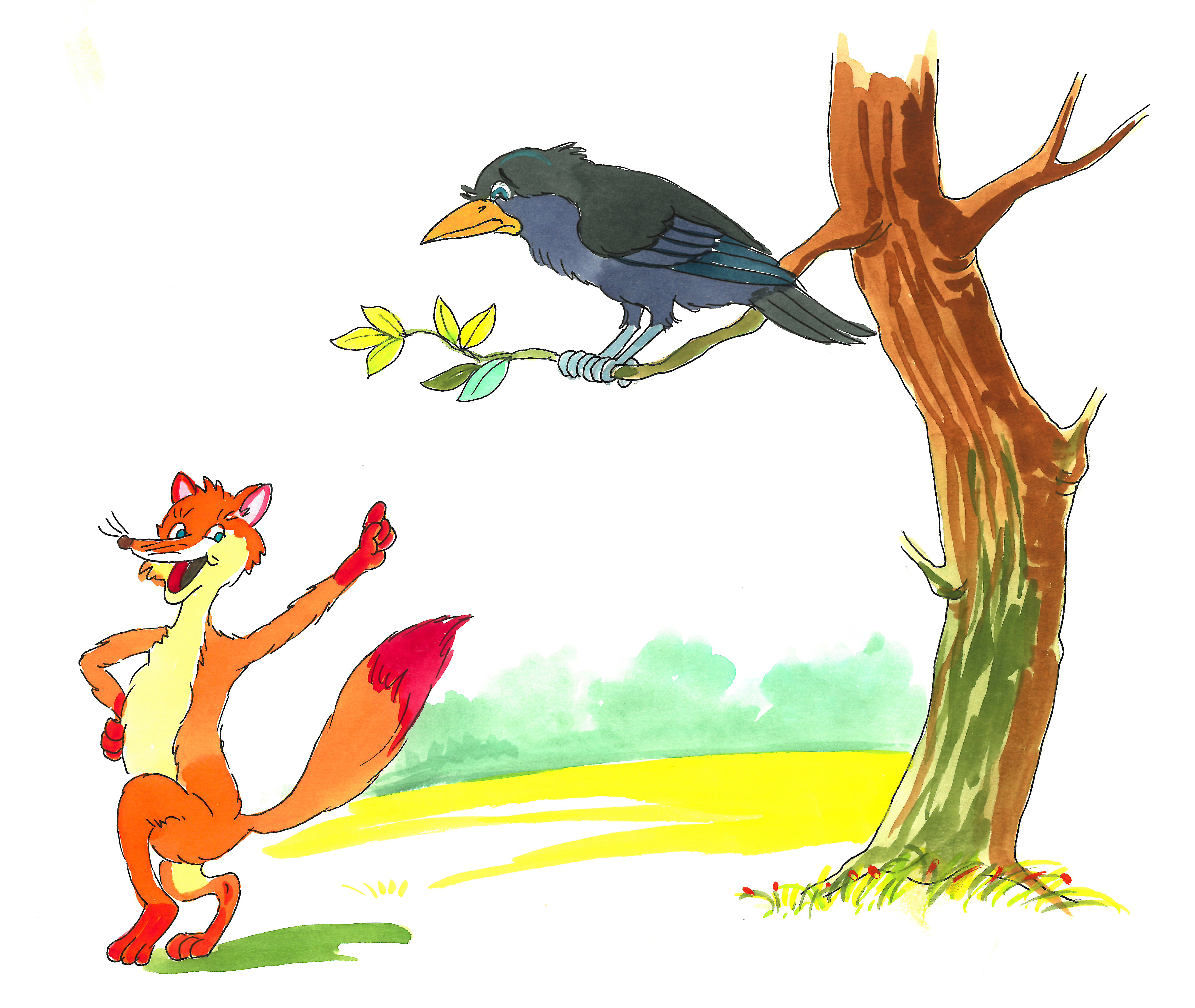 Unfortunately for the Crow, the Fox doesn’t really care about singing. He happily snapped up the piece of cheese and left the Crow chocked and sad.